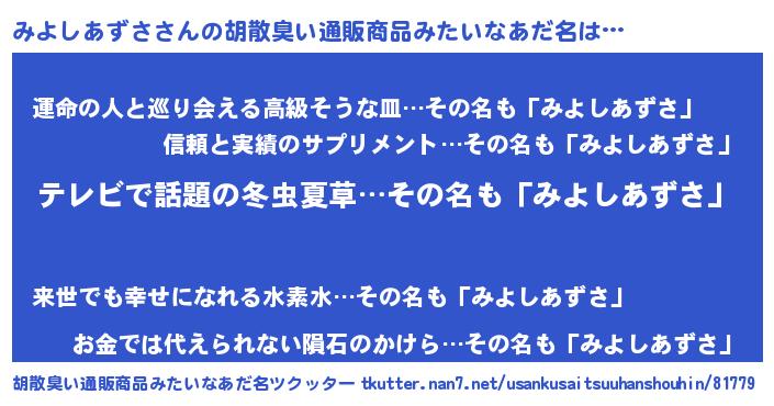 | 肩書あだ名 | 『みよしあずさ機長』『みよしあずさ総統』 |