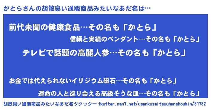| 意味不明あだ名 | 『自称かとら』『永久保存かとら』 |