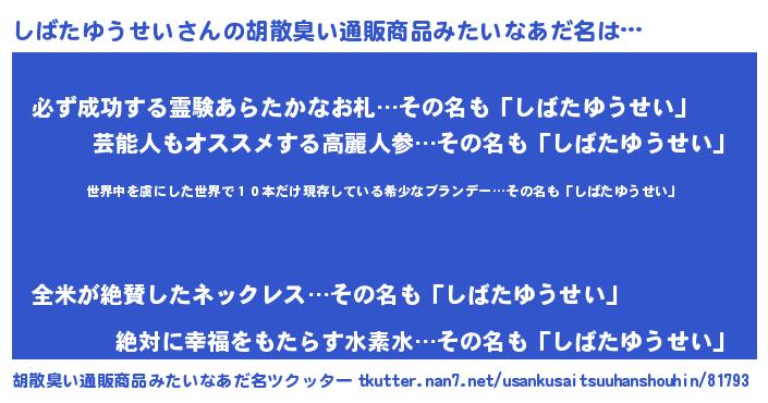 しばたゆうせいさんの胡散臭い通販商品みたいなあだ名をツクッター!