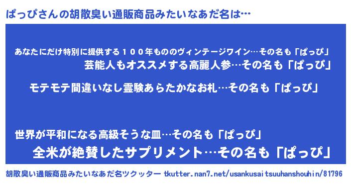 | 意味不明あだ名 | 『ペロリンぱっぴ』『自称ぱっぴ』 |