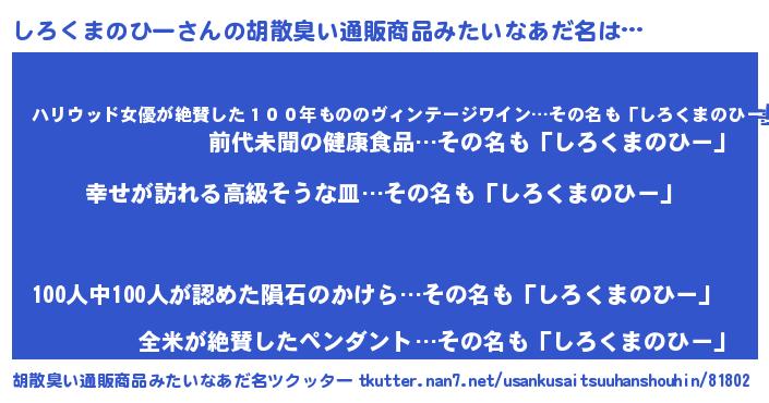 | 意味不明あだ名 | 『しろくまのひーフォーエバー』 |