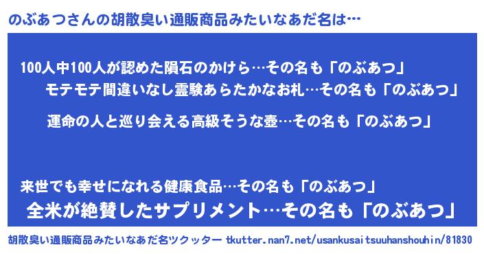| 意味不明あだ名 | 『のぶあつフォーエバー』 |