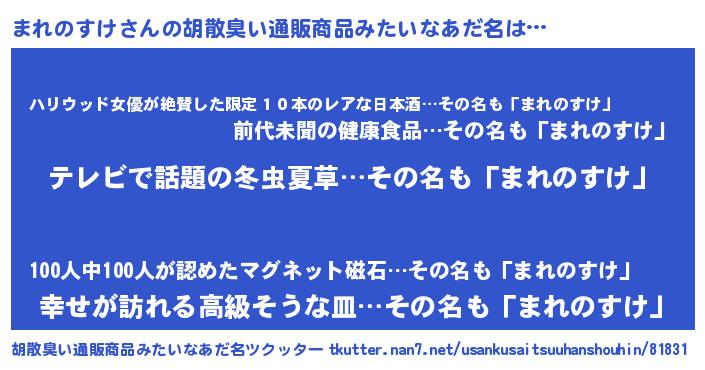 | 意味不明あだ名 | 『自称まれのすけ』『永久保存まれのすけ』 |