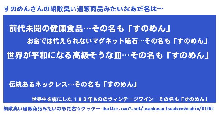 | ヒーロー風カッコイイあだ名 | 『ウルトラすのめんマン』『ネオスノメン』 |