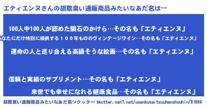 | ファンタジー風あだ名 | 『エターナルエティエンヌー』 |