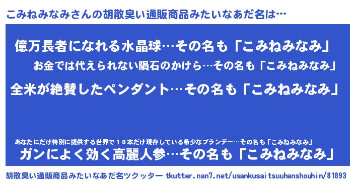 | ヘコむあだ名 | 『こみぷりん』『こみっふぃ~』 |