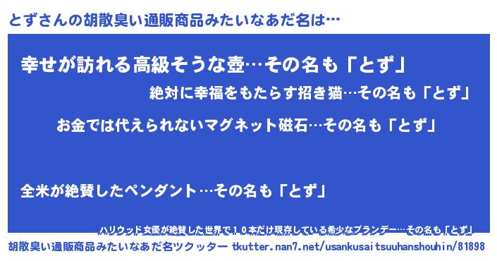 | ヘコむあだ名 | 『なまこ酢』『とず(笑)』『とず太郎』 |
