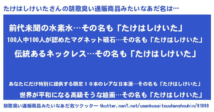 | ヘコむあだ名 | 『たけっ子』『たけはしけいた(震え声)』 |