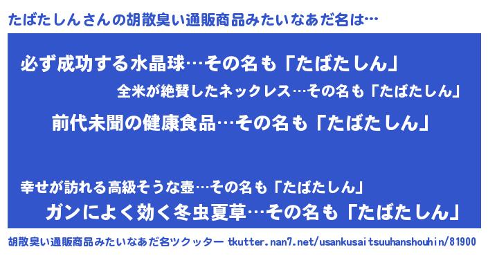| ヘコむあだ名 | 『たばたしん(笑)』『たばにゅー』 |