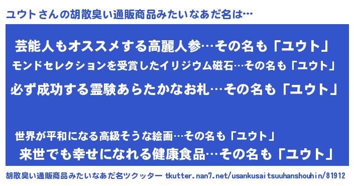 | 意味不明あだ名 | 『ペロリンユウト』『自称ユウト』 |