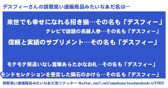 | 意味不明あだ名 | 『とにかく怪しいデスフィー』 |