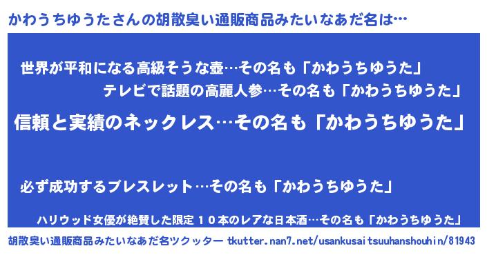 | 意味不明あだ名 | 『とにかく怪しいかわうちゆうた』 |