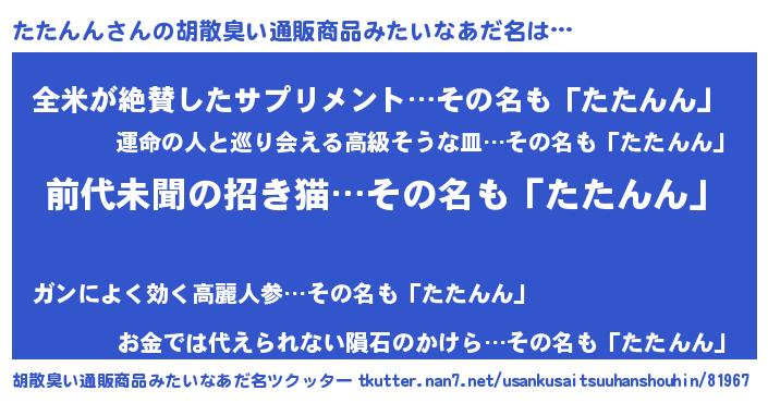 | 意味不明あだ名 | 『永久保存たたんん』 |