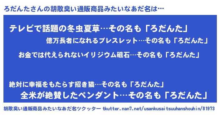 | 欧米人風あだ名 | 『ダニエルろだんた』『ウサインろだんた』 |