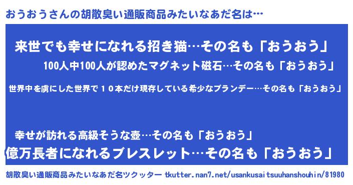| 意味不明あだ名 | 『住所不定無職おうおう(93歳)』 |