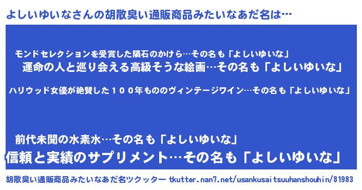 | 意味不明あだ名 | 『住所不定無職よしいゆいな(7歳)』 |