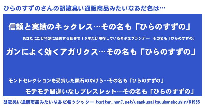 | 意味不明あだ名 | 『自称ひらのすずの』 |
