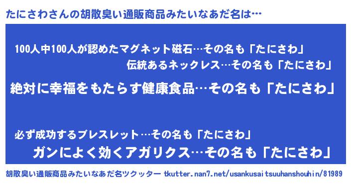 | ヘコむあだ名 | 『たにさわ(苦笑)』『たにを』 |