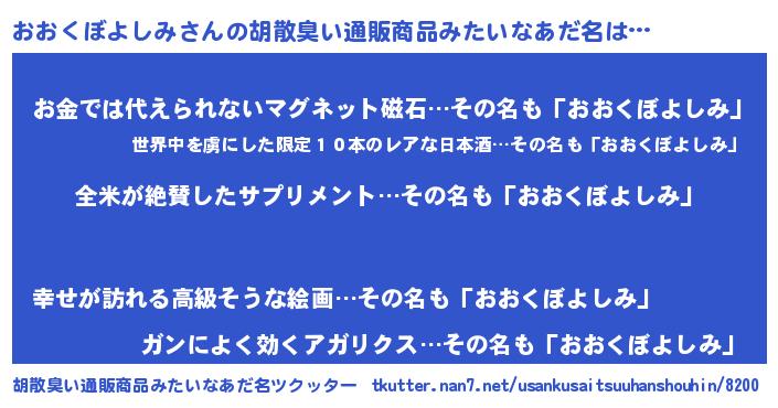 | 男性向けラノベタイトル風あだ名 | 『おおくぼよしみの嫁は女の子じゃないと思った?』 |