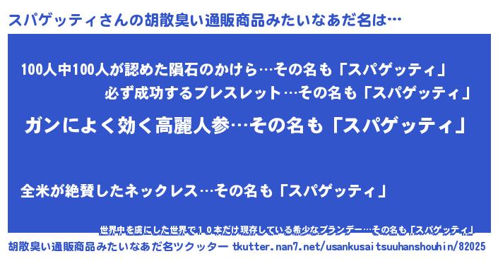 | 意味不明あだ名 | 『自称スパゲッティ』 |