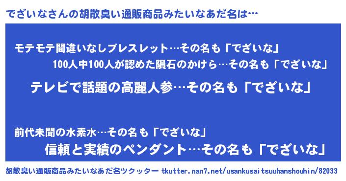 | 欧米人風あだ名 | 『アンジェラ・でざいな』 |