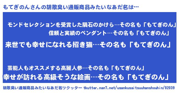 | 意味不明あだ名 | 『永久保存もてぎのん』 |