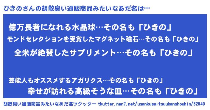 | 意味不明あだ名 | 『とにかく怪しいひきの』 |