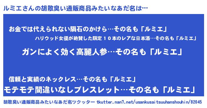 | ヘコむあだ名 | 『ルミふぇ~』『ルミぷりん』 |