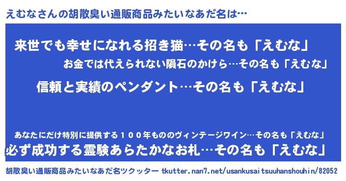 | 意味不明あだ名 | 『とにかく怪しいえむな』 |
