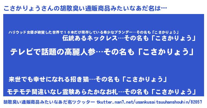 | 意味不明あだ名 | 『自称こさかりょう』 |