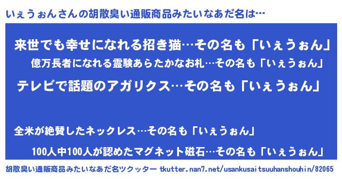 | 意味不明あだ名 | 『自称いぇうぉん』『永久保存いぇうぉん』 |