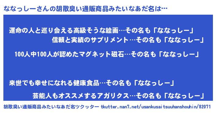 | ヘコむあだ名 | 『つくし』『ななっぺ』『ななにゅー』 |