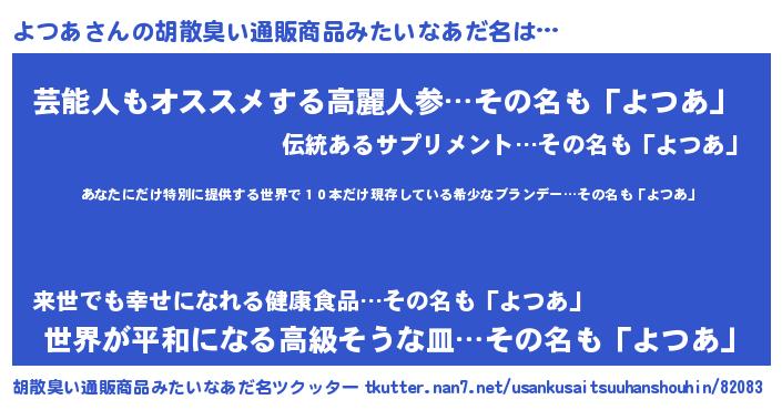| 欧米人風あだ名 | 『アンジェラ・よつあ』『ウサインよつあ』 |