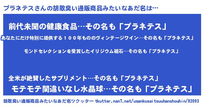 | 男性向けラノベタイトル風あだ名 | 『うちのプラネテスが世界を掌握している!』 |