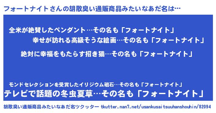 | 欧米人風あだ名 | 『アンジェラ・フォートナイト』 |