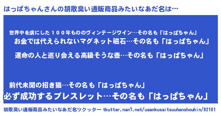 | 欧米人風あだ名 | 『はっぱちゃんクリステル』 |