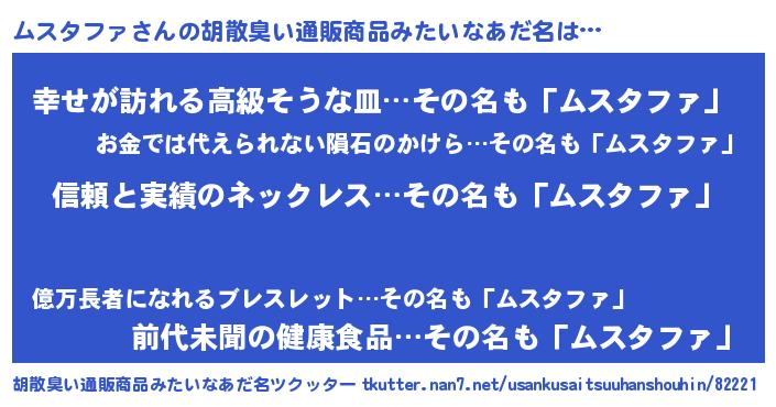 | 意味不明あだ名 | 『とにかく怪しいムスタファ』 |