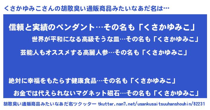 | 意味不明あだ名 | 『自称くさかゆみこ』 |