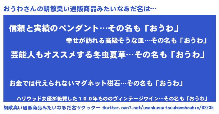 | 意味不明あだ名 | 『ニラ科おうわ属』『自称おうわ』 |