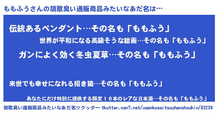 | 意味不明あだ名 | 『自称ももふう』『しいたけ科ももふう属』 |