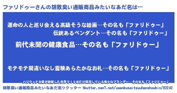 | 意味不明あだ名 | 『永久保存ファリドゥー』 |