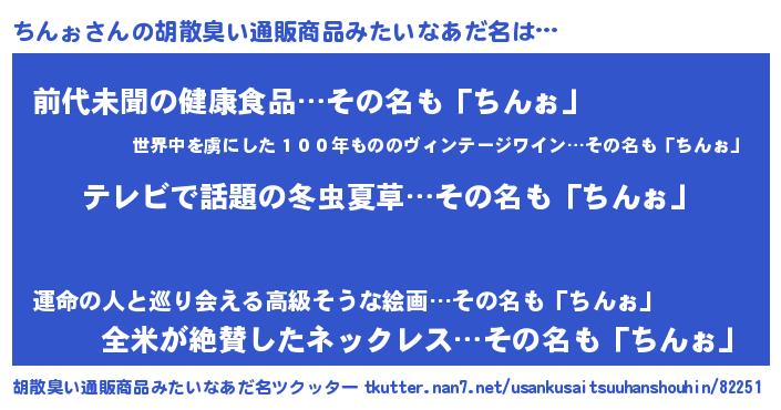 | 女子向けラノベタイトル風あだ名 | 『闇のちんぉ』『ちんぉ様がみてる』 |