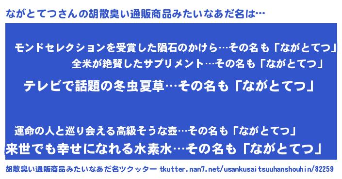 | 意味不明あだ名 | 『自称ながとてつ』『永久保存ながとてつ』 |