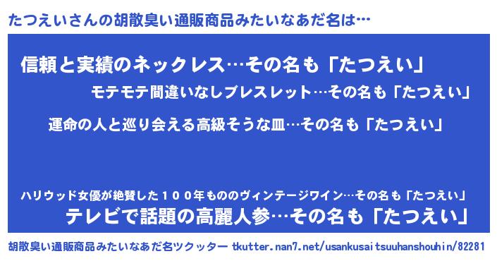 | 意味不明あだ名 | 『たつえいフォーエバー』『自称たつえい』 |