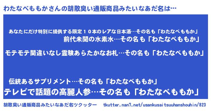 | ヘコむあだ名 | 『わたっふぃ~』『わたなべももか(笑)』 |