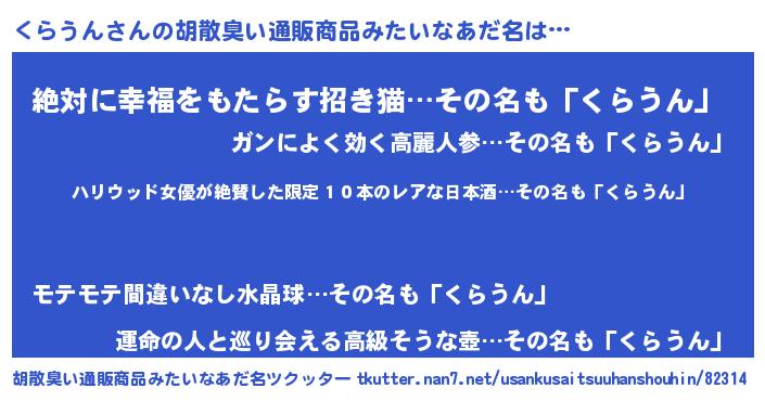| 意味不明あだ名 | 『住所不定無職くらうん(40歳)』 |