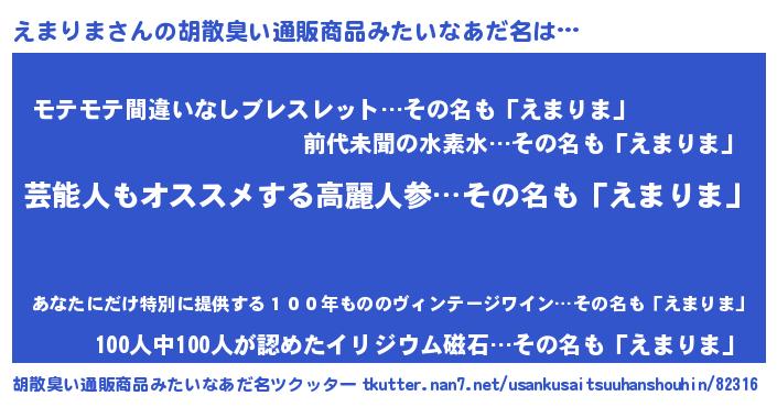 | ヘコむあだ名 | 『えまふぇ~』『えまりま(苦笑)』 |