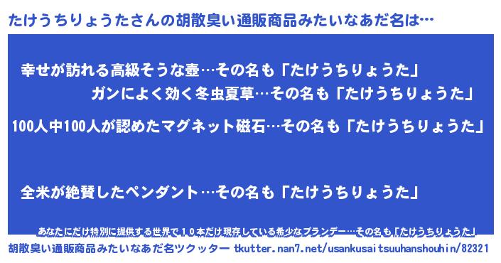 | 女子向けラノベタイトル風あだ名 | 『シンデレラたけうちりょうた家の靴箱館』 |