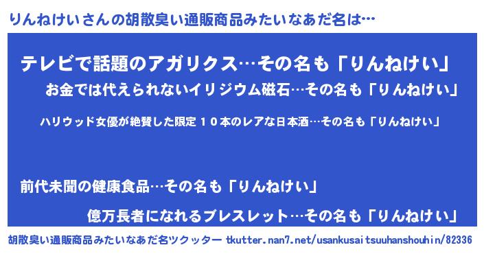| 意味不明あだ名 | 『住所不定無職りんねけい(47歳)』 |