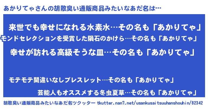 | 意味不明あだ名 | 『あかりてゃフォーエバー』 |